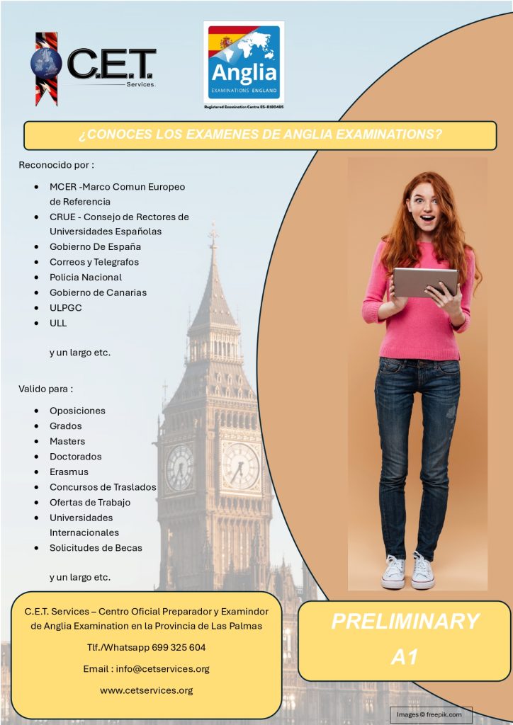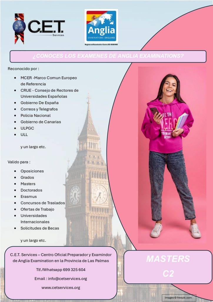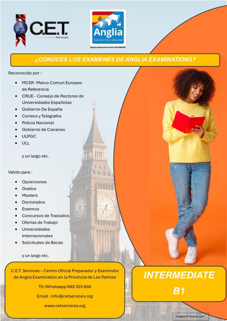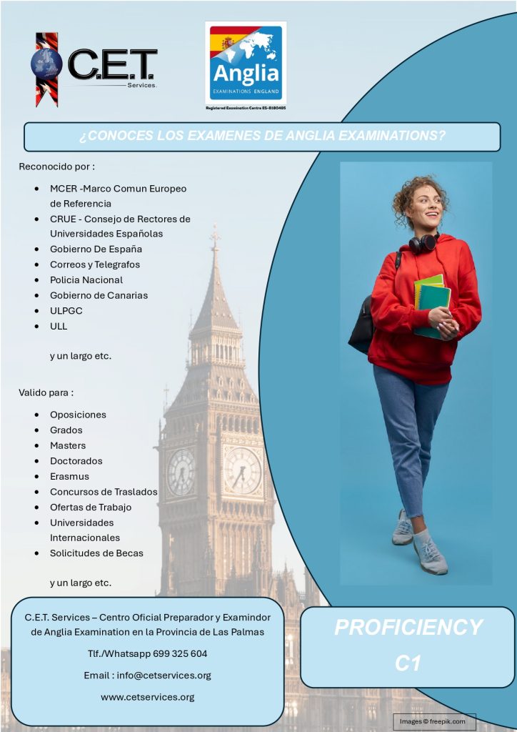 C.E.T. Services no es una academia, somos un Centro Oficial Preparador, Examinador y Testador de Anglia Examinations y de Trinity College London además de ser Centro Preparador para la Escuela Oficial de Idiomas Candidatos por Libre. Ofrecemos un amplio catalogo de servicios educativos relacionado con el aprendizaje de idiomas. Entra y Conocenos.