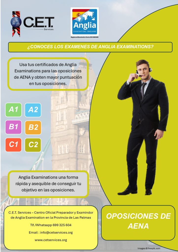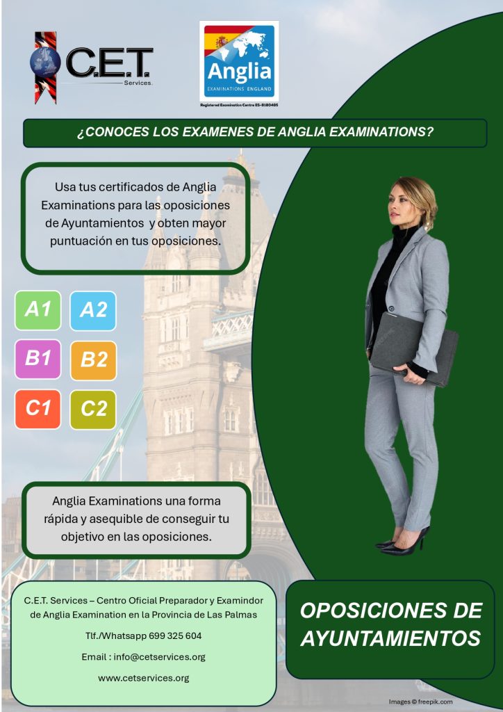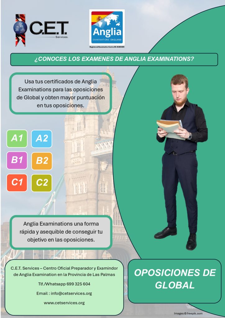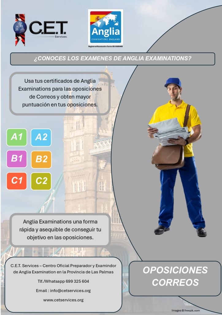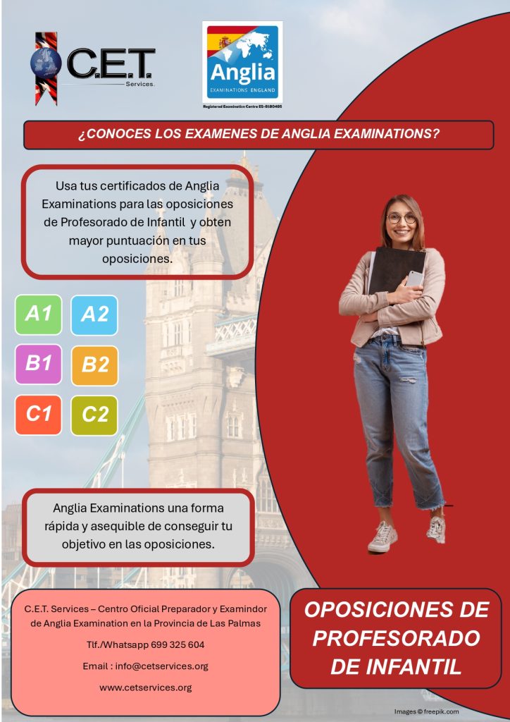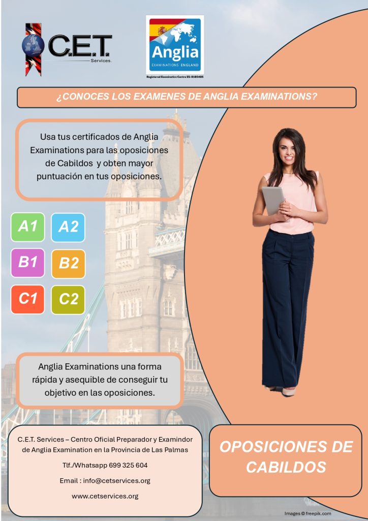 C.E.T. Services no es una academia, somos un Centro Oficial Preparador, Examinador y Testador de Anglia Examinations y de Trinity College London además de ser Centro Preparador para la Escuela Oficial de Idiomas Candidatos por Libre. Ofrecemos un amplio catalogo de servicios educativos relacionado con el aprendizaje de idiomas. Entra y Conocenos.