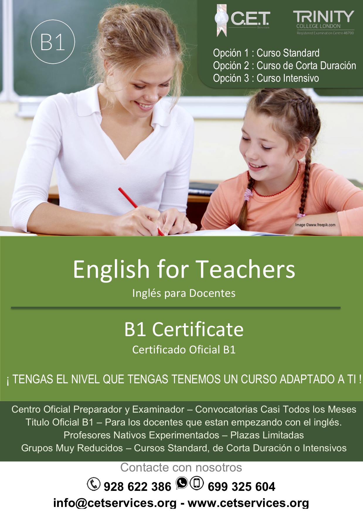 Conscientes de ello en C.E.T. Services te ofreceremos un curso para la preparación y certificación del B1, con profesores nativos experimentados y mas de 23 años de experiencia.
