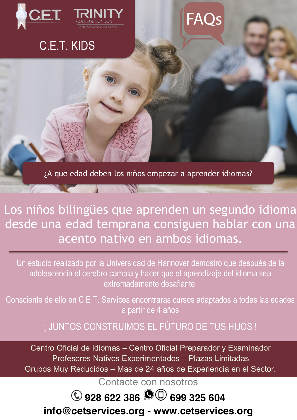 Consciente de ello en C.E.T. Services encontraras cursos adaptados a todas las edades a partir de 4 años