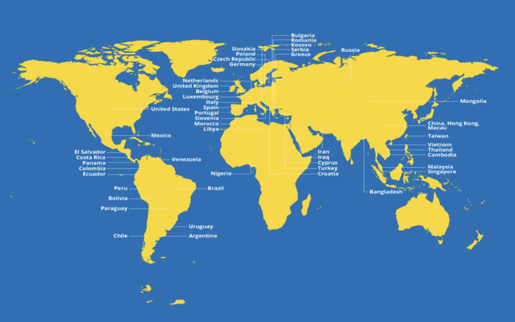 Anglia Examinations cuenta con oficinas y centros examinadores en América, África, Asia y Europa, donde se realizan más de 150,000 exámenes en aproximadamente 50 paises cada año.