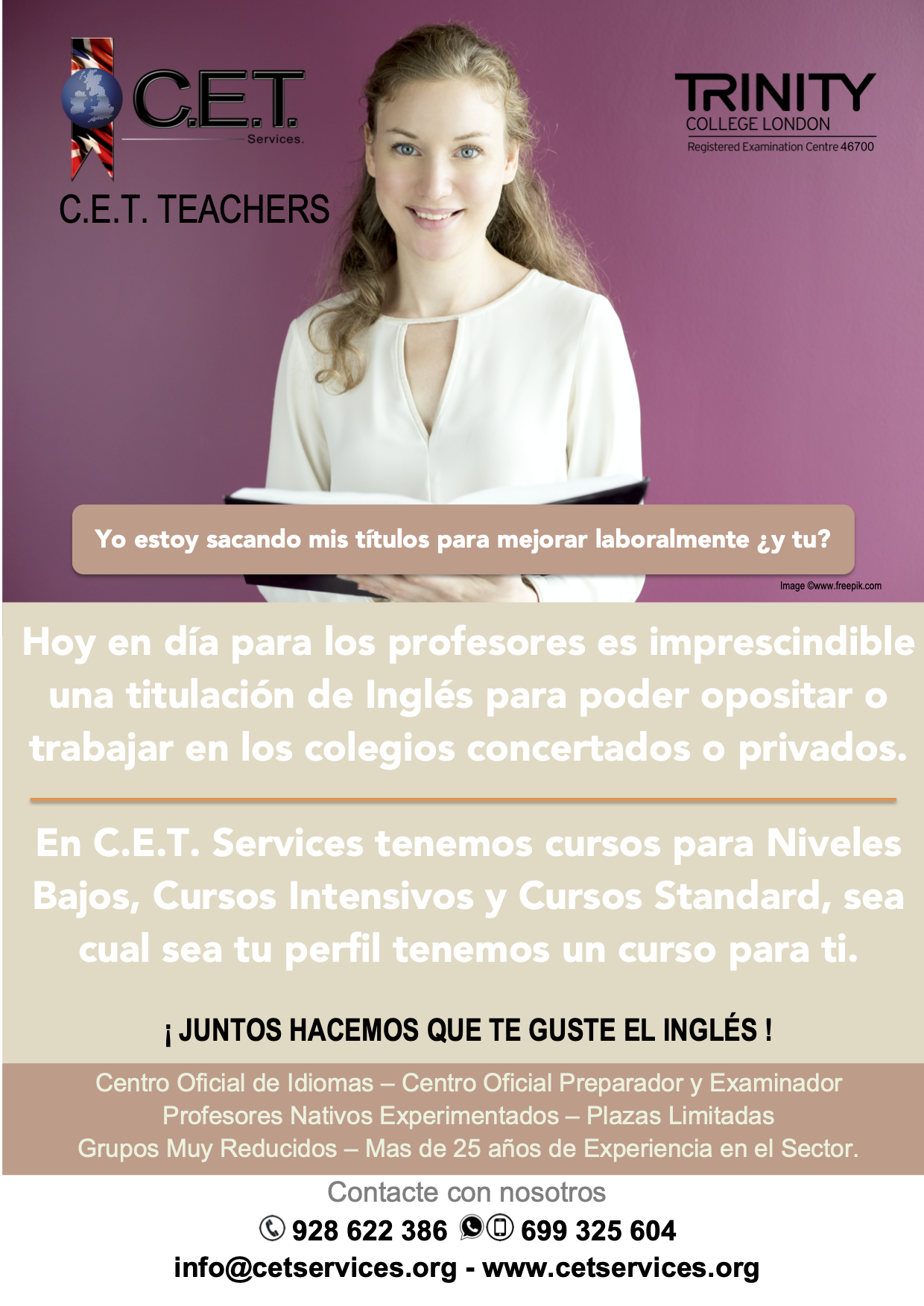 En C.E.T. Services tenemos cursos para Niveles Bajos, Cursos Intensivos y Cursos Standard, sea cual sea tu perfil tenemos un curso para ti.